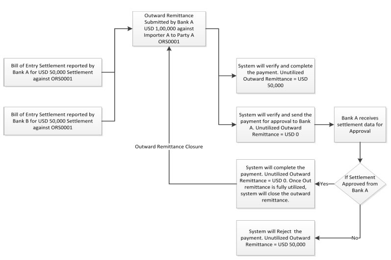 In order to facilitate outward remittance by any bank others than the AD bank name in BOE, the system will have additional process of approval for AD code transfer cases and settlement of transactions. -